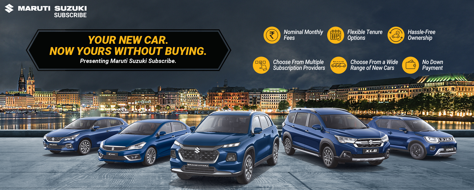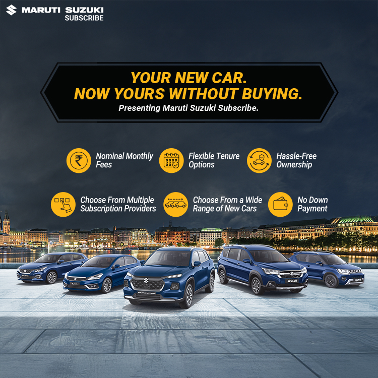 Maruti Suzuki Subscribe enables all customers to enjoy driving their preferred Maruti Suzuki cars without having to deal with all the financial responsibilities that come with owning a car.All you need to do is opt for a monthly subscription plan at a fixed monthly fee, which includes the routine maintenance and insurance costs, and choose a flexible tenure. At Velocity Cars in, Civil Lines, Jhansi, all Hatchback, Sedan, SUV, the MUV models line-up includes Baleno, Invicto, EVitara, Jimny, Ciaz, Ignis, Fronx, Grand Vitara, XL6. Here, you will enjoy Maruti Suzuki Subscribe benefits such as: